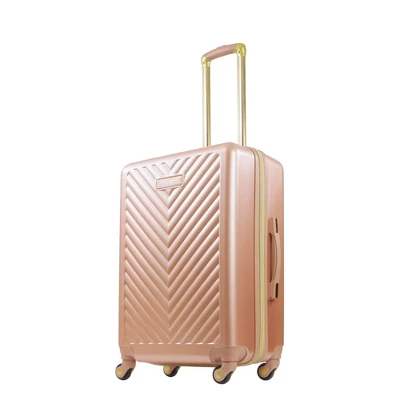 Christian Siriano, Luxury womenswear brand. Designer clothing, accessories, and gift and travel items. Whether you’re travelling with family or just need to pack extra outfits for fashion week, our Addie and Stella by Christian Siriano luggage has you covered. Outfitted with a fashionable textured molded shell and telescopic handle, whisper-quiet wheels, vegan leather details, and all-premium materials. -Officially licensed Christian Siriano New York Luggage.-Made with durable ABS plastic with a polycarbonate film for extra protection against the elements. -Gentle, 360 degree movement on 4 spinner wheels. -Dependable aluminum telescopic pull handle provides hassle-free transportation. -Compression straps help you pack more items and prevent contents from spilling.-Zip wet dry compartment for personal essentials and 1 mesh zip pockets for small accessories.-Sizeable polyester-lined main compartment is divided for easy organizing.-25″ Retractable top and side carry handle for loading into trunks, cars, and overhead bins. -Expandable for more space with a 2 inch zipper gusset.-Gold Hardware.-Easy to spot clean.