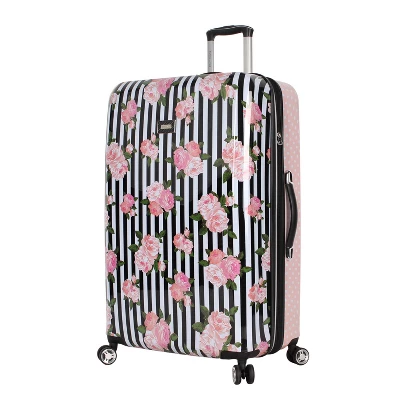 Betsey Johnson Expandable Hardside Large Checked Spinner Suitcase