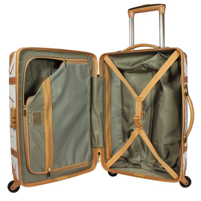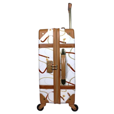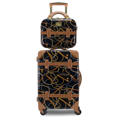 The Chariot Regal Collection is a flawless combination where fashion meets function. Designed from the inside out the vintage luxury trunk features 360 glide wheels, vegan leather trim, a TSA lock, carry handles, and a retractable handle system. Its fully lined interior features a zipper compartment, tie-down straps, and a zipper accessory pocket. The beauty case features a zipper divider, a vanity mirror, accessory pockets, a detachable shoulder strap, and a rear strap that slides over the luggage handle.