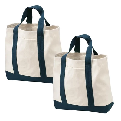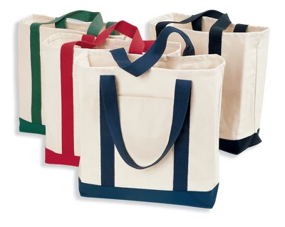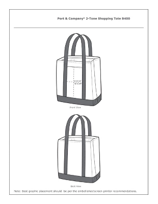 Carry necessities with a touch of traditional style.Durable 10-ounce 100% cotton twill contrast canvas bottom Deep exterior pocket for easy decoration Cotton web handles Dimensions: 14 h x 14.5 w x 5.5 d; Approx. 1 117 cubic inches Note: Bags not intended for use by children 12 and under. Includes a California Prop 65 and social responsibility hangtag. Suggestions: Two-tone shopping tote bag Set of 2 bags Stylish tote bag Spacious shopping tote Durable twill bag Fashionable tote Versatile tote bag Convenient shopping bag Large capacity tote Retail therapy bag Fashion accessory Everyday bag Chic tote Practical shopping bag Twill fabric bag