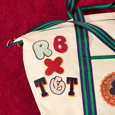 Pack your essentials in style with the Crest Logo Weekender Bag from Rowing Blazers x Target. This softsided weekender bag is designed in a cream color with an orange logo crest on the front and a green and navy striped shoulder strap. The double shoulder handles on top offer another carrying option, while the adjustable shoulder strap is also removable. A side-zip compartment offers a convenient place to store shoes. A front zip pocket, interior zip pocket and interior cellphone pocket provide added organization.