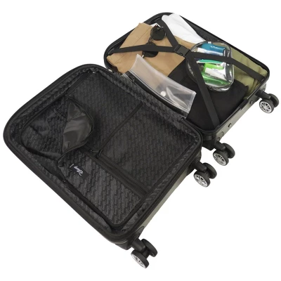 Embossed Mickey Mouse is printed on the front of this hard-sided spinner luggage that is perfect for your next long destination-Made with durable ABS Plastic and Pc film with a Running molded Mickey Mouse on the front. -Supported on 8 stable spinner wheels for hassle-free wheeling. -Convenient aluminum telescopic handle is easy to grip. -Sizeable polyester-lined main compartment is divided for easy organizing. -Interior includes 2 mesh zip pockets and a zip wet dry compartment for personal essentials. -Clothing compression straps help prevent contents from shifting/wrinkling.-Expandable for more space with a 2 inch gusset. -Retractable top and side carry handles for loading into trunks, cars, and overhead bins.-Easy to spot clean. -5 year warranty. -Gold hardware.-22H X 14W X 9.5D-Imported.-This product may contain a chemical known by the state of California to cause cancer, birth defects, or other reproductive harm. www.p65warnings.ca.gov