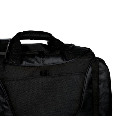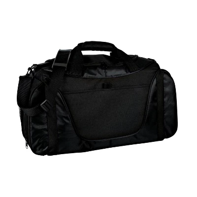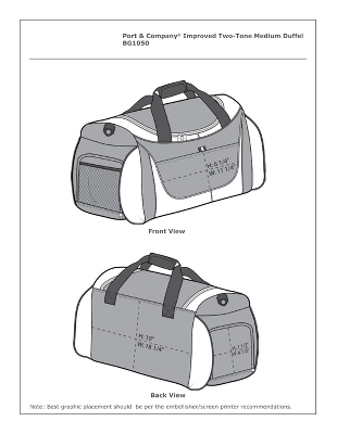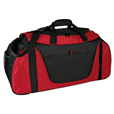 This duffel has it all when it comes to value style and organization. 600 denier polyester canvas with polyester dobby contrast. D-shaped zippered entry for easy access. Front pocket with hook and loop closure. End mesh pocket. Easy-access end pockets Four durable protective feet and built-in bottom board. Web handles with padded grip. Detachable adjustable shoulder strap Dimensions: 11.75 h x 27 w x 10 d; Approx. 3 173 cubic inches. Note: Bags not intended for use by children 12 and under. Includes a California Prop 65 and social responsibility hangtag.Suggestions: Port Authority duffel bag 50L capacity D-shaped zippered entry End pockets Spacious storage Durable construction Versatile usage Travel companion Outdoor adventures Gym bag Weekend getaway Convenient organization Stylish design High-quality materials Easy-to-carry handles