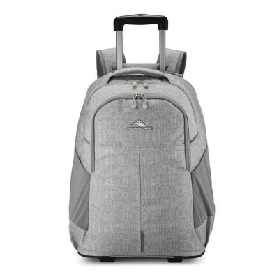 Gear up for the year or your next trip with the High Sierra Powerglide Pro Wheeled Backpack, ideal for students, travelers, and anyone else in need of a durable bag. This rolling backpack features a telescoping luggage handle that zips away whenever you plan to use the bag’s straps. With 360-degree reflectivity, this backpack is bright in reflective light for increased safety. Equipped with smooth-rolling, corner-mounting wheels, witness the seamless mobility of this backpack as you roll it to any destination. Inside, locate the main compartment, suitable for all bigger belongings, the full-length secondary pocket, and the fully padded laptop sleeve that fits most laptops up to 17 inches, keeping your electronics safe and secure. On the exterior, this bag features a front accessory pocket, ideal for organizing any small items, and a pocket on either side that holds water bottles. The tuck-away backpack straps with air mesh and foam create unmatched breathable comfortability for any excursion, big or small. Protect your belongings with the comfortable and mobile High Sierra Powerglide Pro Wheeled Backpack.