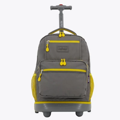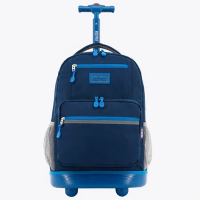 Let’s get back to school with your belongings neatly stowed in the J World Sunset Rolling Backpack. The versatility of the Sunset Rolling Backpack allows for it function as both carry- on luggage that will fit under the airplane seat or overhead compartment and a strapped backpack for students. It has fully functional wheels that are both soft and noiseless that allows for a controlled motion. Organize all of your belongings with a front pocket equipped with a pencil holder, key fob and mesh pocket perfect for storing items that can be easily accessed. For the people on the go in need of hydration, it has side mesh pockets that are ideal for storing water bottles and various other drink containers.