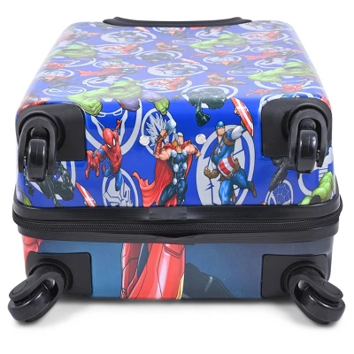 Your young hero will travel in style with this Marvel ABS Hardside Carry-On Spinner Suitcase. The blue suitcase is brightened with appealing artwork of various Marvel superheroes on the front and back. Made of lightweight ABS material, it also has four spinner wheels and an adjustable handle for simple mobility. A zippered fastening runs around the three sides of the suitcase, and there are two spacious compartments with zippers, pockets and straps to keep their things neatly organized and secured.