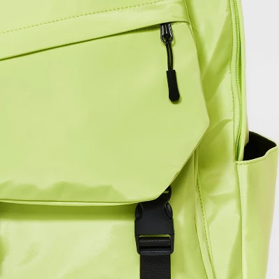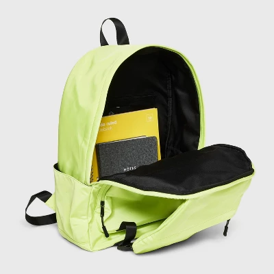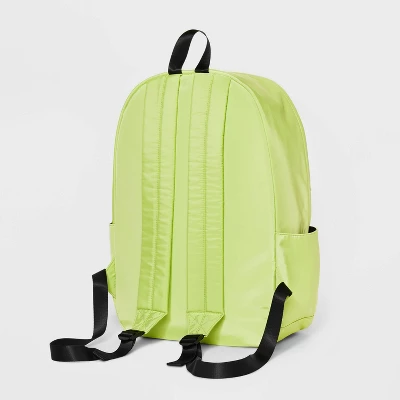 Green backpack with a front pouch is great for everyday commute, travel and more. Soft and lightweight fabric allows for easy carrying. Side pockets let you bring a water bottle or other small items. Adjustable straps and a top handle make it easy to carry.