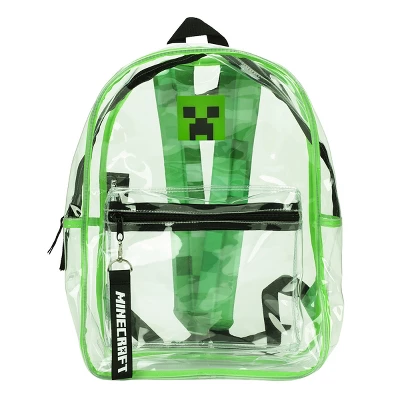 Prepare for your next adventure with this officially licensed Minecraft backpack. Made from durable materials, the bag features clear plastic with bright green piping. The backpack comes with a front pocket with zipper and a detachable laptop pocket with a pixelated pattern inspired by the game. Measuring 17″h x 12″w x 5.5″d, it provides ample space for your books, supplies, and gaming gear. With adjustable shoulder straps for comfortable carrying, this backpack is the perfect choice for any Minecraft fan. Keep it clean with a simple wipe down with a damp cloth.