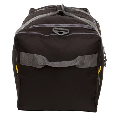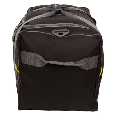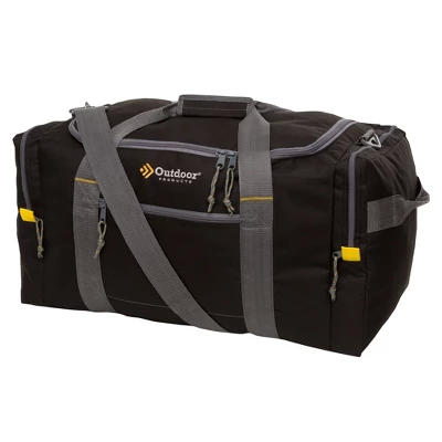 designed to accommodate your gear to and from your destination. Strategically designed side pockets store your shoes and sweaty unmentionables. Roomy main compartment accommodates a complete change of clothes for the weekend along with your toiletries. A zipped sleeve in the front stores travel documents, keys or a phone. Carry your belongings in style with this Black Duffel from Outdoor Products. The 24″ duffel features a full-length zip closure; 2 neoprene-wrapped handles on top; an easy-access, front mesh pocket, a padded, adjustable, removable shoulder strap and a slot side pocket.