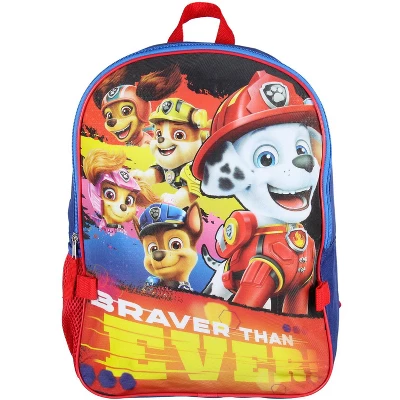 - This 2-piece backpack set features your 16″ backpack with a fun print design of Marshall, Chase, Rubble, Zuma, and Skye and the saying Braver Than Ever! The lunch bag features a similar character design.