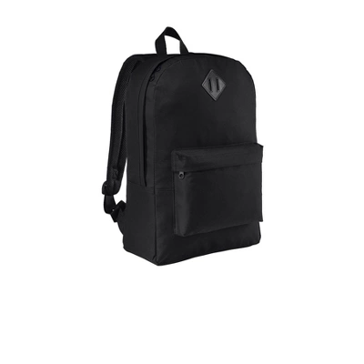 With modern touches like a laptop sleeve and office organizer this backpack still has that retro flair but with an updated look and functionality. 600 denier polyester canvas Large main compartment Suspended padded laptop sleeve Padded shoulder straps Front office organization Front zippered pocket Faux leather diamond patch Laptop sleeve dimensions: 11.25 h x 11.5 w x 1 d; fits most 15 laptops Dimensions: 17.75 h x 12.25 w x 5.25 d; Approx. 1 141 cubic inchesNote: Bags not intended for use by children 12 and under.