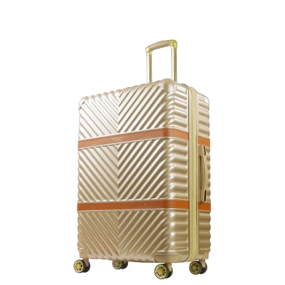 Christian Siriano, Luxury womenswear brand. Designer clothing, accessories, and gift and travel items. Whether you’re travelling with family or just need to pack extra outfits for fashion week, our Addie and Stella by Christian Siriano luggage has you covered. Outfitted with a fashionable textured molded shell and telescopic handle, whisper-quiet wheels, vegan leather details, and all-premium materials. -Officially licensed Christian Siriano New York Luggage.-Made with durable ABS plastic with a polycarbonate film for extra protection against the elements. -Gentle, 360 degree movement on 8 spinner wheels. -Dependable aluminum telescopic pull handle provides hassle-free transportation. -Compression straps help you pack more items and prevent contents from spilling.-Zip wet dry compartment for personal essentials and 1 mesh zip pockets for small accessories.-Sizeable polyester-lined main compartment is divided for easy organizing.-29″ Retractable top and side carry handle for loading into trunks, cars, and overhead bins.-Expandable for more space with a 2 inch zipper gusset.-Gold Hardware-Easy to spot clean.