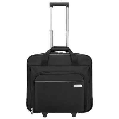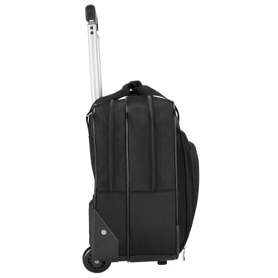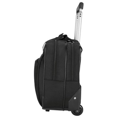 The Targus Rolling Laptop Case is designed to protect laptops with up to 16” screens. The closed cell foam padding keeps your laptop protected while the durable/water resistant 1200D polyester material keeps belongings dry in wet weather. The front zip-down workstation includes pen loops, a business card holder, zippered pocket, cell phone pocket and large pouch to store additional accessories. The Metro Rolling laptop Case also includes a large zippered compartment to store office essentials or clothing for overnight trips. The telescoping handle retracts into a zippered compartment when not in use and the case includes a dual carry handle for added convenience. The Metro Rolling laptop Case is a functional transit case designed for professionals on the go.