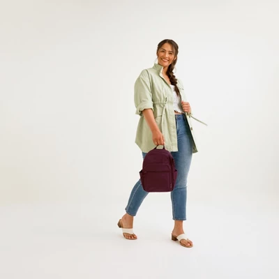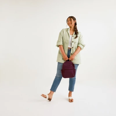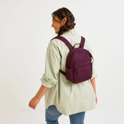Before you head out to take on the day, pack up this scaled-down backpack that holds just what you need. Its hands-free convenience and on-trend silhouette make it a fast favorite Details: Exterior features a front zip pocket (with one slip and two pen pockets) and three slip pockets. Interior features one zip and two slip pockets. Zip closures. Capacity 9 L. Care Tips: Machine wash cold, gentle cycle, only non-chlorine bleach when needed; line dry