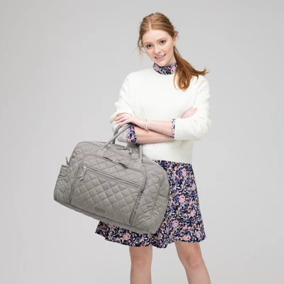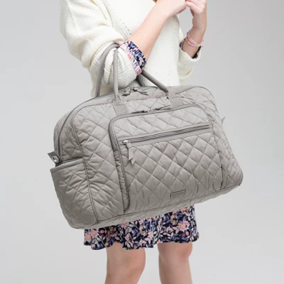 Rack up the frequent flyer miles and journey in style with our carry-on compliant Weekender Travel Bag. Your new favorite travel companion is thoughtfully designed with a roomy central compartment and plenty of perfectly placed pockets to securely hold all your go-to packables. You’ll make travel look and feel effortless. Details: Made from quilted, sleek, water-repellent polyester. Exterior features a front zip compartment (with a slip pocket inside), a front zip pocket, a side slip pocket and two back slip pockets. Interior features five mesh pockets. Trolley sleeve. Carry-on compliant. Removable strap. Zip closures. Capacity 30 L. Care Tips: Spot clean with mild detergent and a soft, damp cloth, rinse thoroughly; lay flat to dry