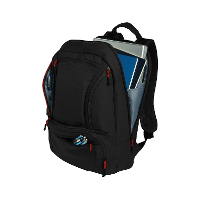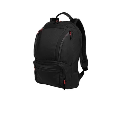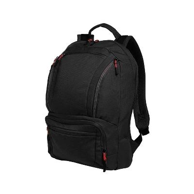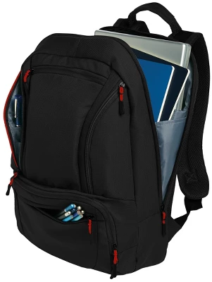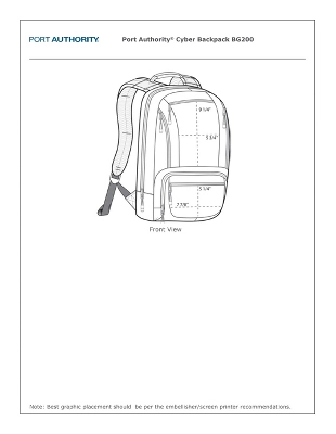 Light and designed for tech gear transport this backpack features a padded laptop/tablet sleeve and flexible zippered pockets to keep things secure and orderly.600 denier mini rip stop polyester Large main compartment with padded laptop/tablet sleeve Front upper pocket for easy decoration access Lower front compartment with zippered front flat pocket Comfortable ergonomic air mesh padded straps and handle Padded air mesh back for ventilation Laptop sleeve dimensions: 12.5 h x 11.5 w x 1.75 d; fits most 15 laptops Dimensions: 18 h x 12 w x 5.5 d; Approx. 1 200 cubic inches Note: Bags not intended for use by children 12 and under. Includes a California Prop 65 and social responsibility hangtag. Suggestions: Port Authority Cyber laptop backpack Stylish and secure bag Versatile usage Organized compartments Protective laptop backpack Tech-savvy individuals Spacious storage Secure laptop compartment Work and school bag Trendy design Comfortable carrying Durable construction Tech essentials Water-resistant materials Convenient organization