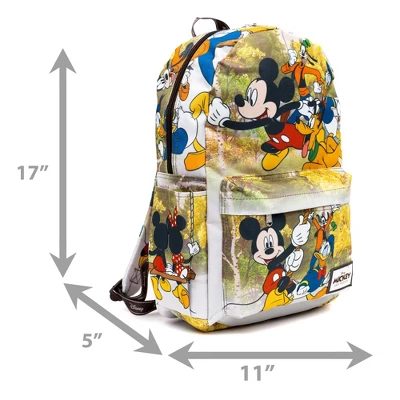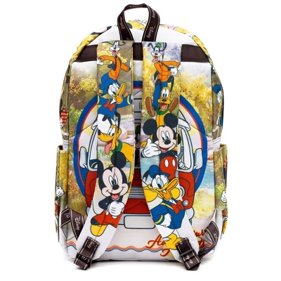 WondaPop Disney Nylon Backpacks are known for their whimsical Disney prints and designs. This beautiful, colorful backpack features bright images of Mickey Mouse along with his friends having a great time playing. You’ll find Goofy, Donald Duck and even Pluto frolicking in the sun. On the side pocket there’s a quiet moment for Mickey and Minnie Mouse enjoying a moment on the swing. On the back, Mickey, Donald and Goofy take off on a road trip in their van. The bag hasfabric straps for putting pins on.
