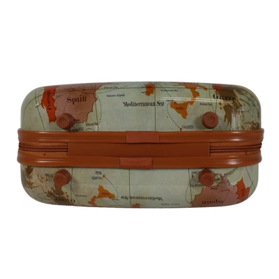 Inspired by the World Geography, this lightweight fully lined luggage set glides effortlessly with the help of four 360-degree wheels that change direction at a second’s notice. A unique design and modern twist to the traditional luggage, ideal for the fashion-forward and experienced traveler. The carry-on upright features spinner wheels, a built-in 3-digit TSA combination lock, carry handles, and a retractable handle system. Its fully lined interior features a zipper divider, tie-down straps, and accessory pockets. The cosmetic travel bag features a zipper divider, one accessory pocket with an elastic band, a detachable shoulder strap, and a rear strap that slides over the luggage handle.